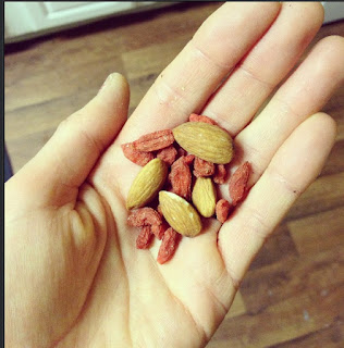 In the afternoon I snacked on a handful of almonds and goji berries. and 2 small pieces of organic dark chocolate (not pictured)